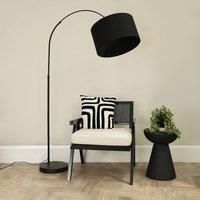 The Louis arch floor lamp in black is a modern take on a vintage classic. Perfect for reading lights, slotting beside or behind sofas so the light hangs overhead. Paired with a charcoal drum shade. | ValueLights Louis Black Arched Curved Floor Lamp with Fabric Drum Lamp Shade - Manufacturers part numbers: B4238|ValueLights_5059406042386