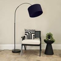 The Louis arch floor lamp in black is a modern take on a vintage classic. Perfect for reading lights, slotting beside or behind sofas so the light hangs overhead. Paired with a charcoal drum shade. | ValueLights Louis Black Arched Curved Floor Lamp with Fabric Drum Lamp Shade in Navy - Manufacturers part number: ValueLights_5059406042416