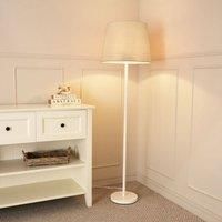 The Charlie floor lamp is a versatile lamp base. With a sleek and understated design it's just begging to be topped with this classic navy tapered shade. | ValueLights Charlie White Metal Single Stem Floor Lamp with Fabric Tapered Lamp Shade in Beige - Manufacturers part numbers: B4362|ValueLights_5059406043628