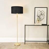 The perfect foundation for any shade. The Maggie candlestick floor lamp in gold is an understated, slim and tall floor lamp base perfect for tighter spaces and ready to glow with this black drum shade. | ValueLights Maggie Gold Metal Candlestick Floor Lamp with Fabric Lamp Shade in Black - Manufacturers part number: ValueLights_5059406045950