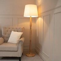The Victoria candle stick floor lamp in light wood is the perfect choice for any home with a traditional interior. Paired with a grey fabric tapered shade for the perfect finished piece. | ValueLights Victoria Light Wood Traditional Stem Floor Lamp with Fabric Tapered Shade in White
