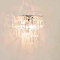 Double the dazzle with this pair of Kelsks chandelier-style pendant light shades. Each one features three tiers of cascading clear acrylic jewel-effect droplets that catch and reflect the light beautifully. Finished with a sleek chrome frame, they bring instant glamour to your space. No wiring required just pop them onto your existing ceiling fittings and enjoy the sparkle. Perfect for bedrooms, lounges, dining rooms and hallways. | ValueLights Kelsks Pair of Chrome with Droplets Chandelier Style Flush Wall Lights in Silver - Manufacturers part numbers: B4771|ValueLights_5059406047718