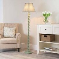 The birdie bobbin floor lamp in sage green is the best way to add a little sweetness to your style. Soften up your interiors with a style so versatile you could have one in every room from the nursery to the dining room. Matched with a pink aztec shade. | ValueLights Bobbins Sage Green Floor Lamp with Tapered Fabric Pleated Shade and LED Bulb in Pale Blue - Manufacturers part number: ValueLights_5059406048111