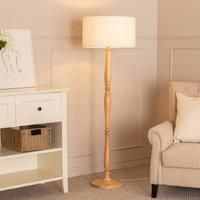 Fitting seamlessly into a neutral or Scandi-inspired home, the Victoria light wood floor lamp suits a wide range of interior dcors. The wooden base has a classic candlestick look and is the perfect partner for the cream colour boucle shade. Theres a 1.8m cable from plug to lamp with an in-line foot switch, too. Meaning its user (and back) friendly! | ValueLights Victoria Candlestick Light Wood Floor Lamp with Cream Boucle Drum Lamp Shade in Natural