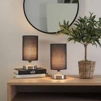 TABLE LAMPS - A dimmable touch table lamp with metal base and fabric shade. Features a 150cm cable with UK mains plug.