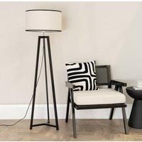 Good things come in threes and the Lottie wooden tripod floor lamp has three legs! With a modern black finish, this sleek and stylish floor lamp is topped with a natural colour linen drum shade which has a contrasting black trim. Leggy and en vogue, this lamp is runway ready! Theres a generous 3m long cable from plug to lamp too, so you have flexibility in where you place this bright beauty. | ValueLights Lottie Black Wood Tripod Floor Lamp with Linen Black Trim Drum Lamp Shade - Manufacturers part numbers: B5657|ValueLights_5059406056574