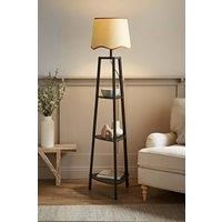 Say hello to Hiru, the matte black multitasker thats got it all going on! This sleek tripod floor lamp comes with three built-in shelves for styling your fave books, plants or treasures and a natural linen scalloped shade for extra charm. Choose your trim, black, white, or rust, to match your vibe. With its stunning finish and playful design, Hiru brings light, storage, and personality to any corner you call home. | ValueLights Hiru Black 3 Tier Wooden Shelf Floor Lamp with Scallop Edge Shade in Burnt Orange - Manufacturers part number: ValueLights_5059406056932