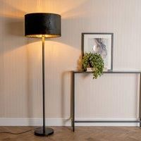 The Charlie black floor lamp is all about understated, simple elegance. The sleek black metal stem is paired with a plush black velvet lampshade that has a chic gold interior, making it a great fit for various interior styles. Whether your dcor leans towards modern minimalism or has more of a mid-century vibe, Charlie is the perfect choice. Plus, it has a handy foot switch on a 1.8m cable, making it ideal for living rooms, dining areas, bedrooms, and home offices. | ValueLights Charlie Black Stem Floor Lamp with Black Velvet & Gold Inner Lamp Shade