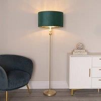 Check out Maggie, our stylish gold floor lamp that brings a hefty dose of elegance with its classic candlestick design. The slimline shape makes it an ideal choice for brightening up dull corners without hogging space. Topped with a velvet shade thats available in navy, green or black and features a shiny gold interior, this corner lamp is all about style and sophistication. Plus, it comes with a 1.9m cable from the plug to the lamp and a convenient foot switch for easy use. | ValueLights Maggie Gold Candlestick Floor Lamp with Velvet with Gold Inner Lamp Shade & Bulb in Bottle Green - Manufacturers part number: ValueLights_5059406061646