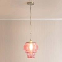 ValueLights Lane Pink Glass 5 Tier Layer Shade Brushed Chrome Single Ceiling Pendant Light Give your home a chic update with this brushed chrome lamp holder ceiling light, paired with the stylish Lane 5 tier green glass shade. The soft glow from the clear glass creates a cosy vibe, while the brushed chrome adds a sleek, modern twist. Whether you're entertaining guests or enjoying a moment of calm, this light effortlessly elevates your space. Perfect for kitchens, dining areas, or anywhere you need a li... - Manufacturers part number: B6279