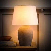 Clints the lamp that adds a touch of luxury and a whole lot of flair! The hand-finished ceramic base boasts a unique etched design, making it a true statement piece. With a fabric cable and white linen shade, Clint casts a warm, inviting glow thats perfect for any room. If youre looking for a lamp that combines style, sophistication, and a bit of cheeky charm, Clints your man! Its the light thats sure to turn heads and brighten your space with elegance. | ValueLights Clint Linen Tapered Shade Grey Etched Hand Finished Ceramic Table Lamp with Bulb in Mid Grey - Manufacturers part number: ValueLights_5059406066009