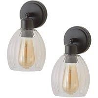The Cheltenham ribbed glass dome wall lights come as a stylish set of two, designed to mix elegance with function. Each light features an adjustable arm for flexible illumination, while ribbed glass shades add depth and character. Choose from brushed gold, matte black or polished chrome bases to suit your dcor. This versatile pair works beautifully in bedrooms, hallways or living rooms, and can be teamed with other lights in the Cheltenham range for seamless style. | ValueLights Cheltenham Pair of Ribbed Glass Dome Adjustable Spotlight Wall Lights in Black - Manufacturers part numbers: B6833|ValueLights_5059406068331