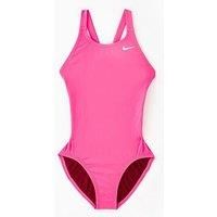 Nike Girls Performance Fastback One Piece Swimsuit Size & Fit One size Details Girls Performance Fastback One Piece Swimsuit by Nike Pink One piece style Wide straps at the shoulders High coverage scoop neck Flat seams Lined Material & Care Material Content: 100%polyester - Manufacturers part number: NKNESSA764-678