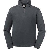 Update your wardrobe with this modern classic. Perfect for colder days, wear it zipped down with a shirt underneath or on its own. The slimmer shoulders and leaner arms are more flattering for a modern look. The simple but timeless design pairs with jeans and work trousers alike. | Russell Men's Authentic Quarter Zip Sweatshirt in Grey | Size: 4XL