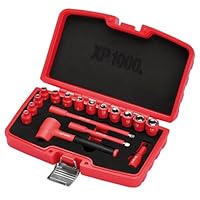 Draper Expert XP1000 quality. This VDE socket set is ideal for hybrid and electric car servicing and maintenance, plus electricians and other trades working on live circuits. Each component is insulated and tested to 10,000V for safe working on live circuits of 1,000V AC and 1,500V DC. There are thirteen 6-point sockets - sizes 4, 4.5, 5, 5.5, 6, 7, 8, 9, 10, 11, 12, 13, 14mm. The reversible ratchet has a quick-release mechanism and 45-teeth enabling 8 movement. Finally, the set includes three extension... - Manufacturers part number: 18115