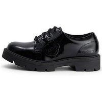 Kickers Kori Lace in Black Patent Leather Perfect for school shoes! Kori is everything you'd want in a shoe. Built on a chunky sole and in a high shine leather upper, these Kicks are made to wear anywhere. A simple silhouette made true to our heritage DNA with subtle branding. The lace up fastening is given top marks thanks to the addition of a branded lace keeper. Pair me with tights or some funky socks for an easy to wear style. Additions: If wet, dry in an area away from direct heat or light. Materi... - Manufacturers part number: Kickers_11720337