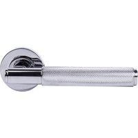 The London door handle features a classic round rose design with an attractive polished chrome finish.