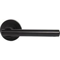 This door handle features a classic round rose design and an attractive matt black finish.
