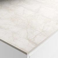 Designed to look feel and perform like stone Zenith breakfast bars are super tough and super stylish with all the benefits of laminate - easy to move cut fit and maintain. The Zenith Pokhara Marble breakfast bar is a light marble design with travelling golden veins on a light beige depth for a light and luxurious statement. Pokhara Marble features a solid waterproof light grey core so it looks like stone all the way through - ideal for accommodating flush undermount sinks and engraved drainer grooves.