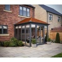 This SOLid Roof Full Height Edwardian Conservatory featuring grey frames fascia and gutter has a contemporary feel suitable for most modern homes. Using precision engineered parts the structure is very easily installed and with warm roof technology the SOLid roof conservatory will give you an energy efficient space providing a comfortable living area all year round.