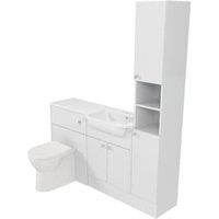 Deccado Benham Bright White Right Hand 1500mm Fitted Tower, Vanity & Toilet Pan Unit Combination with Right Hand Basin