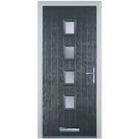 Door-Stop 4 Square Anthracite Grey Left Hand Composite Door with Stippolyte Glass - 920 x 2100mm