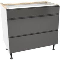 The Wickes Madison Dark Grey Gloss Drawer Unit boasts a striking dark grey gloss finish and a seamless handle-less design that embodies contemporary elegance. It not only enhances the aesthetic appeal of your kitchen but also maximises storage efficiency with It's spacious interior. This unit comes supplied with all fixtures and fittings and adjustable legs for uneven floor surfaces. Our 'Wickes Lifestyle Kitchens' range of flat-pack kitchens are available for you to assemble and fit whenever suits you.