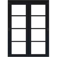 The Rohden Fully-Finished 1 Light Internal French Door Set is factory-finished in low-sheen black paint ready for installation in your home. It features a contemporary 4 light design with narrow glazing bars factory-fitted with clear toughened glass. Supplied complete with 2 doors a matching frame pack hinges and a shoot-bolt it is the ideal solution for dividing 2 rooms in a super-stylish way.