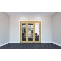 The Rohden Un-Finished 1 Lite Internal Bi-Fold Door Set comes with genuine white oak veneers ready for you to finish with your choice of wood stain and features fully-glazed doors with clear toughened safety glass for peace of mind. The doorset is supplied complete with frame system and all required hardware (not handles) with the hinges being surface-mounted making installation neat and simple. The doors can be configured to open either to the left or right at the time of installation and the locking d...