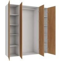 Our Claydon Slab Quad Wardrobe is all you need to create a 2.25m wardrobe with a rail and shelves. Designed with four doors in a stylish warm oak finish this wardrobe includes a hanging rail and six shelves offering additional storage for your clothes and accessories. Please note handle holes are not pre-drilled to allow for choice of style open height and handle length. Handles sold separately.