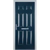 The Door-Stop 6 Panel Blue Right Hand FD30 Fire Door Set is ideal for internal environments specifically designed for use in apartment blocks where the door leads to an internal corridor. It features a six-panel design with a blue GRP skin on both the external and internal surfaces and is right-hand hung in a white veka chamfered uPVC frame.