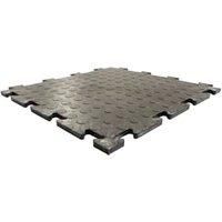 This is a 250mm x 250mm sample. RhinoTile Round is the perfect product for garages sheds outbuildings or offering heavy duty protection while carrying out projects indoors or outdoors. It's simple puzzle design makes it easy to join without tape nails or other fixings (we recommend using a non-marking rubber mallet to piece the joints together). Made from 90% recycled material which is resistant to most chemicals and solvents is easy to clean and offers anti-fatigue properties Suitable in extreme tempe...