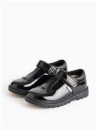 Your little one will love these T bar Patent scruff resistant coated leather shoes. Black with a decorative heart design, glitter textile collar and a one touch fastening, handy for them to put on and take off! With memory foam inners for ultimate comfort, theyre scruff resistant and perfect for long school days.Unique fitting guide - follow the 3 simple steps: Place foot on the sole. 2. Align heel on the guide. 3. Compare the position of the longest toe with Toezone Black T bar shoes Scruff resistant u...