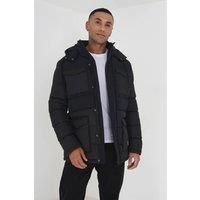 Stay warm this season in this hooded padded parka jacket from Brave Soul. Designed with mixed fabric, this jacket features zip and popper fastening, and two front pockets with side entry. Additional patch chest pockets, funnel neck with hood and drawcord. Model wears UK size M.