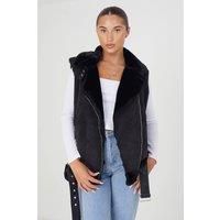Brave Soul Women's Faux Suede Aviator Gilet With Faux Fur Lining in Black | Size: 10