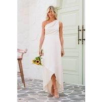 TFNC Dresses - Off shoulder style - Cross front dress - Hi-Lo detailing - Maxi length Material: 100% Polyester. Care: Hand wash only Model is 5'8 Model wears a size 8 UK | TFNC London Women's Delali One Shoulder Mink Dress in Dusty Pink | Size: 8