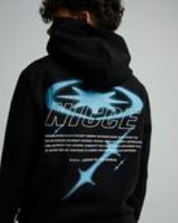 Nicce Junior Tag Hoodie in Circular Black. Exclusive to Footasylum. Your layering options are about to flourish thanks to Nicce and this overhead-style long-sleeved hoodie. With a cosy fixed crossover hood, ribbed cuffs and hem for a snug personalised fit, front kangaroo pouch pocket to warm up your hands on those chillier days, Nicce left chest branding and large graphic print design to reverse. Regular fit. Black Size - S/B
