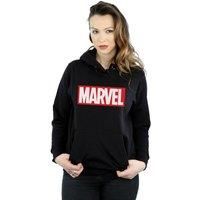 Material: 50% cotton, 50% polyester. Design: printed. 153gsm. Hood features: double layer, drawcord, grown on hood. Cuff: elasticated. Heavyweight. Neckline: hooded. Sleeve-type: long-sleeved. Pockets: 1 kangaroo pocket. Fastening: pull over. 100% officially licensed. | Marvel Comics Women's Classic Logo Hoodie in Black | Size: Medium
