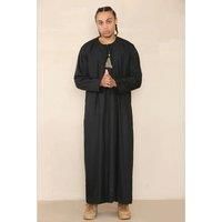 - Men long-sleeve thobe has two pockets on the waist side, a light-weight, loose-fitting, ankle-length long robe.