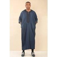 Thobez Men's Moroccan Thobe Gandoura Short Sleeve Jubba Islamic Clothing Kaftan Eid Robe Arab Embroidery in Navy | Size: 54R