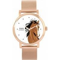 Toff London offers unique watches. Each product is assembled by hand in our workshop, with hand-drawn designs. We offer 38mm cases in silver, gold, rose gold and black. They come with durable interchangeable straps. Pick the strap of your choice and have the perfect ladies' watch. Other features: Water resistant to 3ATM, Reliable quartz movement, 2 year warranty.