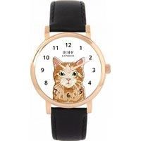 Toff London offers unique watches. Each product is assembled by hand in our workshop, with hand-drawn designs. We offer 38mm cases in silver, gold, rose gold and black. They come with durable interchangeable straps. Pick the strap of your choice and have the perfect ladies' watch. Other features: Water resistant to 3ATM, Reliable quartz movement, 2 year warranty.