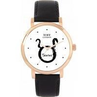 Toff London offers unique watches. Each product is assembled by hand in our workshop, with hand-drawn designs. We offer 38mm cases in silver, gold, rose gold and black. They come with durable interchangeable straps. Pick the strap of your choice and have the perfect ladies' watch. Other features: Water resistant to 3ATM, Reliable quartz movement, 2 year warranty.