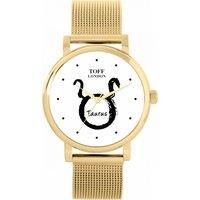 Toff London offers unique watches. Each product is assembled by hand in our workshop, with hand-drawn designs. We offer 38mm cases in silver, gold, rose gold and black. They come with durable interchangeable straps. Pick the strap of your choice and have the perfect ladies' watch. Other features: Water resistant to 3ATM, Reliable quartz movement, 2 year warranty.