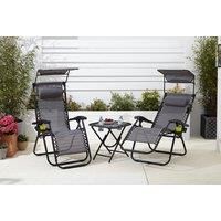Garden Seating: Get a set of zero gravity loungers and side table. Foldable: Designed to be easy to manoeuvre and portable, this set can be folded in order to carry and store. Size: Chair 106cm x 51cm x 89cm and the table 50cm x 50cm. Weight Capacity: 120kg for the chair and 40kg for the table. Colour Options: Available in grey, black and cream. Features: Not only does the back lock into any desired position, these chairs provide plenty of support to relieve any pressure on the body with a padded headre...
