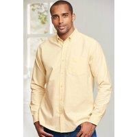Looking and feeling your best just got even easier with our Oxford shirts. Made with 30% recycled cotton, this earth-conscious shirt is breathable, stylish and a wardrobe staple. Add a timeless plain colourway, chest patch pocket, dyed-to-match buttons on the classic button-down collar, adjustable button cuffs and button-through front, plus a slightly curved hem and youre onto a winner. | Cotton Traders Men Long Sleeve Oxford Shirt in Lemon | Size: 5X-Large