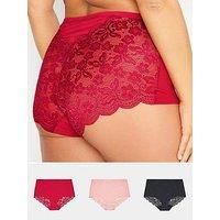 Hit refresh on your lingerie collection with this 3 pack Yours Curve knickers. Made from a stretch fabric, they feature a scalloped trim lace back, and elasticated waistband and are in a high rise, brief style. Pair with a matching bra to give confidence and comfort. - Manufacturers part numbers: Yours_5059738837674|495091