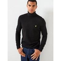 Lyle & Scott Cotton Merino Turtle Neck Jumper Size & Fit True to size - order your usual size Regular fit Available in sizes S - 2XL (S:37", M:39", L:42", XL:44", 2XL:48") Details Cotton Merino Turtleneck Jumper by Lyle & Scott Black Turtle neck Long sleeves Knitted Embroidered logo on chest Material & Care Material Content: SHELL 30% MERINO 70% COTTON