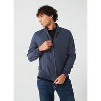 Allsaints Bassett Bomber Jacket - Dark Blue Size & Fit True to size Regular fit Model is 6'1" and wears a size Medium Details Bassett Bomber Jacket by AllSaints Dark Blue Made from woven cotton and nylon-blend fabric Signature Ramskull logo embroidered to the chest Classic short collar Centre front two-way zip fastening Two front zip pockets Long sleeves with zips to the cuffs Chunky ribbed trim to the neckline, cuffs and hemline Material Material Content: 75% cotton 25% polyamide Washing Instructions...