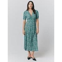 Ghost Flo Floral Midi Tea Dress - Green Floral Short puffed sleeves with gathered cuffs, button through, v-neck, midi tea dress Material Content: 100% Viscose Washing Instructions: Machine Washable